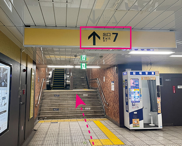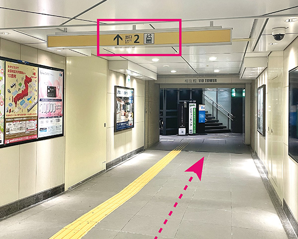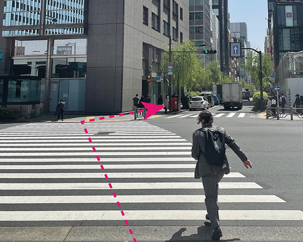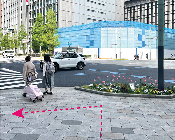 地上に上がったら出口を背中側にして、左側に進んでください。(信号は渡りません。)