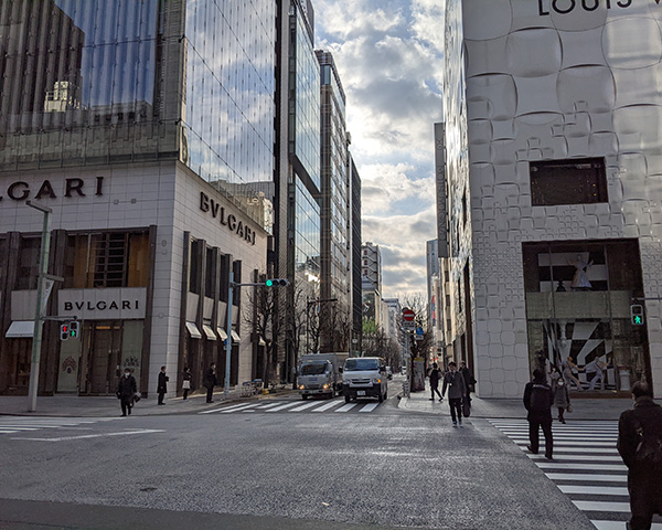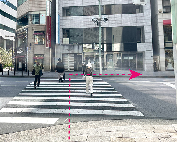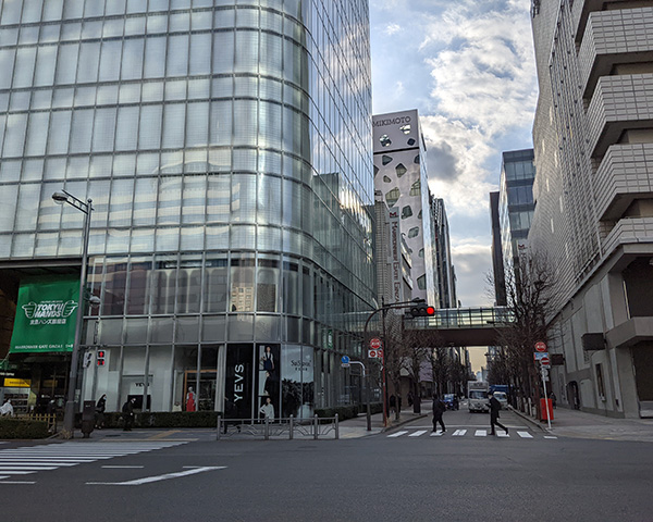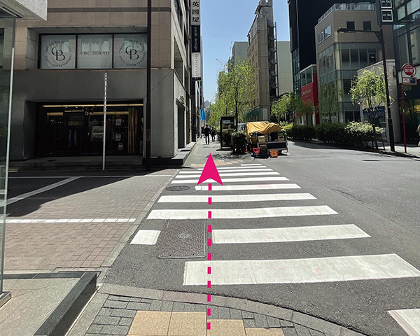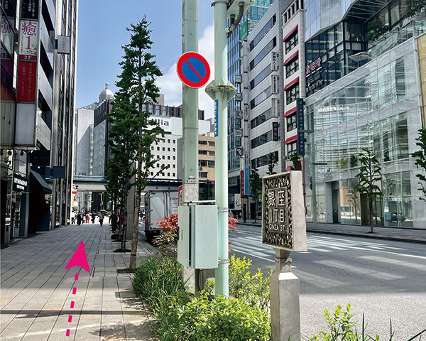 マロニエゲート(銀座西二丁目交差点)を渡りマロニエ通りを進みます。