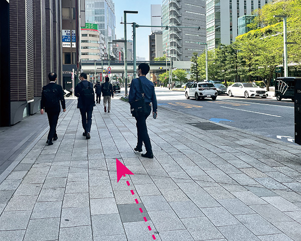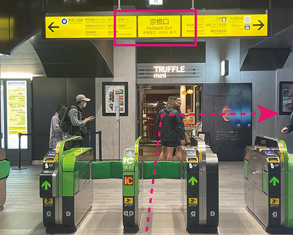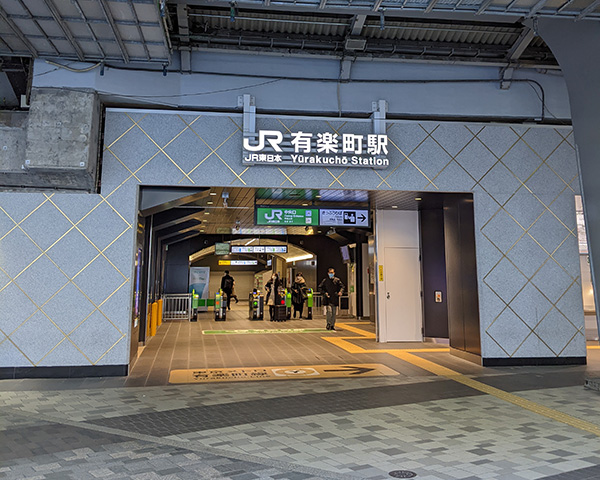 JR有楽町駅中央口出て、JR有楽町駅中央口前をまっすぐ進みます。