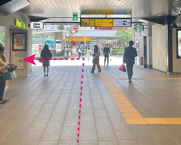 駅内を真っ直ぐに進んで外へ出たら左へ曲がります。