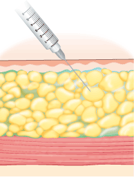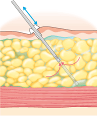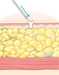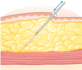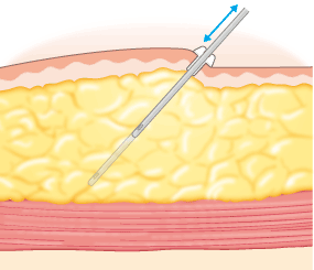 脂肪吸引は、吸引する皮下脂肪の傍の皮膚を約5mm切開し、その穴から吸引カニューレを挿入し、皮下脂肪を吸引ます。