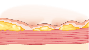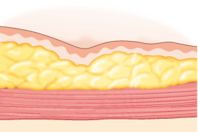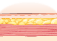 皮下には多くの脂肪が蓄積し、脂肪細胞は結合した状態になっています。この状態のまま吸引する従来の脂肪吸引では、血管や神経など周辺組織を傷つけてしまうことが多く、体への負担が大きなものでした。当院では、体の負担を減らし、脂肪吸引した後の皮膚がたるまない方法を考案しました。