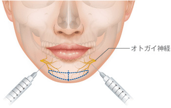 なるべく痛みを感じないように、神経の走行を考慮し、あごの外側から局所麻酔注射をします。