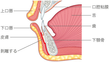 出血しないように、CO2レーザー炭酸ガスレーザーで口の中の粘膜を切開します。