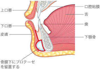 シリコンプロテーゼをそのように下あご骨の上に留置するのは物理的に不可能であることが多いからです。