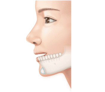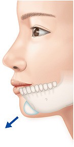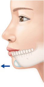 小さなプロテーゼを入れれば少しあごを出すことができ、大きなプロテーゼを入れれば大きくあごを出すことが可能。プロテーゼは自分で選べる。 |