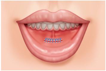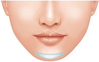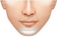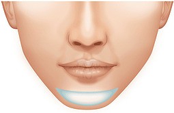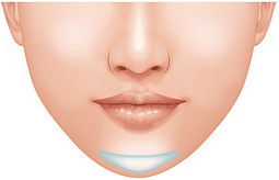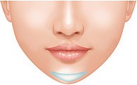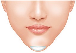 この手術では、下唇の裏側2~3cm程を切開して、フェイスラインに合わせて最も理想的なあごの形にカットしたプロテーゼを骨の上に挿入。その間、わずか 30~60分程度と短時間で終了するのも特徴です。口の中の粘膜は傷の治りが早いので、術後の経過もよく、傷跡も気になりません。