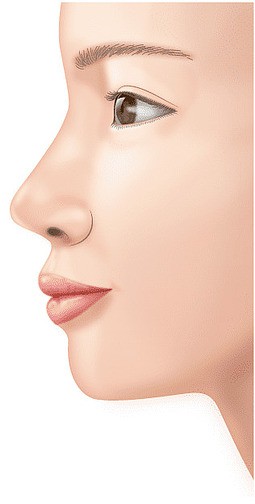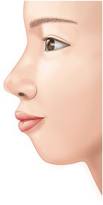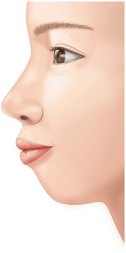 理想的な顔のバランスを判断する基準として、鼻の頭→唇→あごを結ぶ線が直線でつながる“エステティックライン(Eライン)”があります。日本人は骨格的にあごが引っ込んでいることが多く、顔全体が平べったい印象になってしまうのが現実です。
