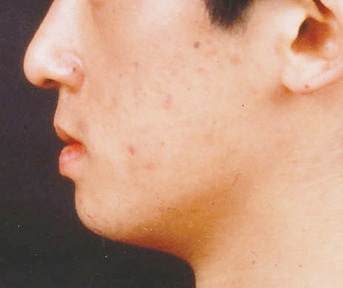 シリコンプロテーゼで顎を下に出さずに前方にだけ出した症例写真