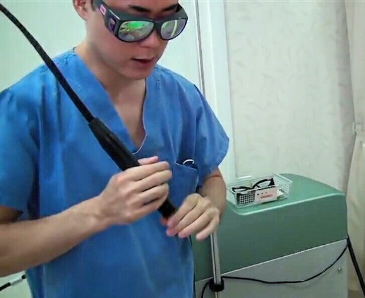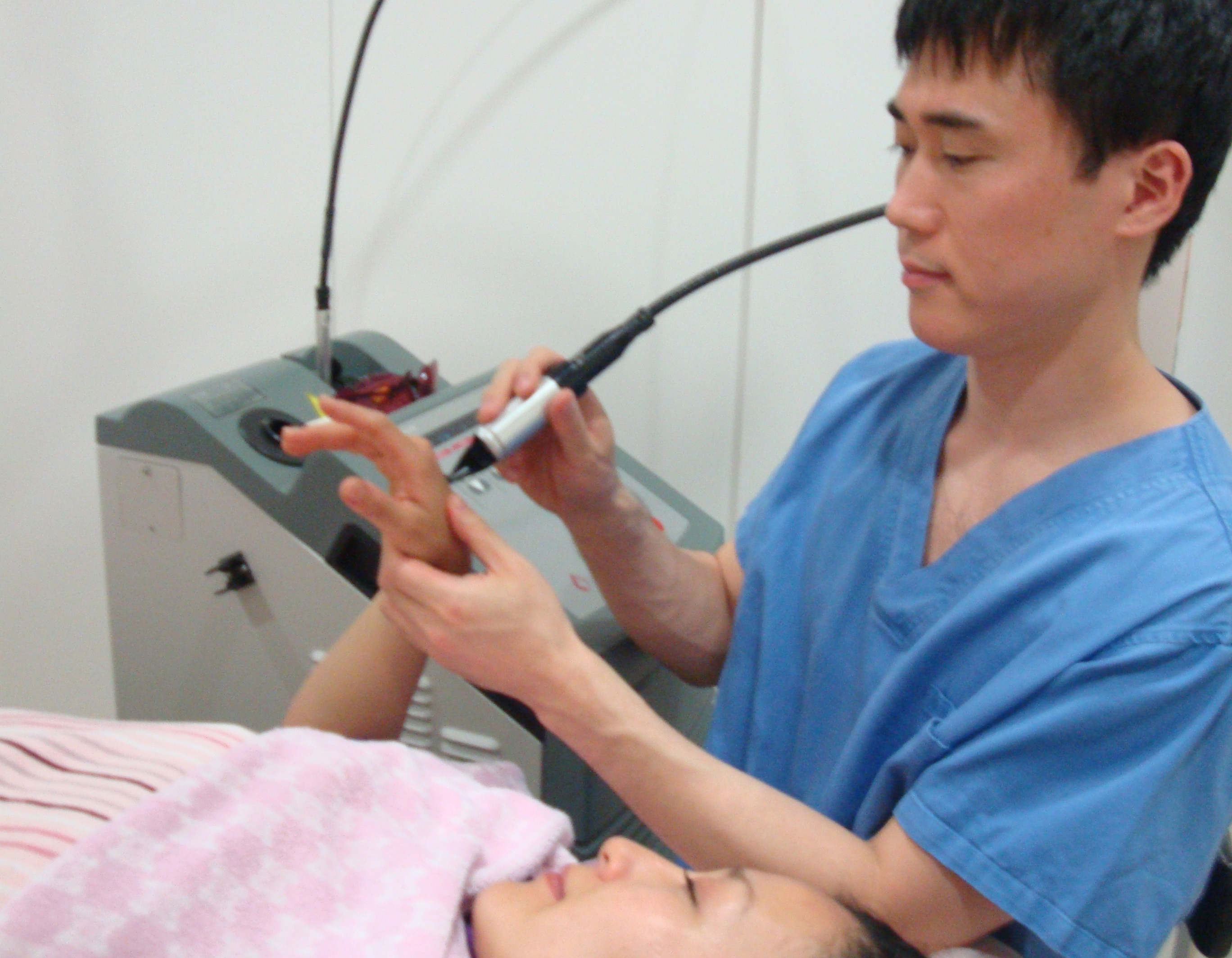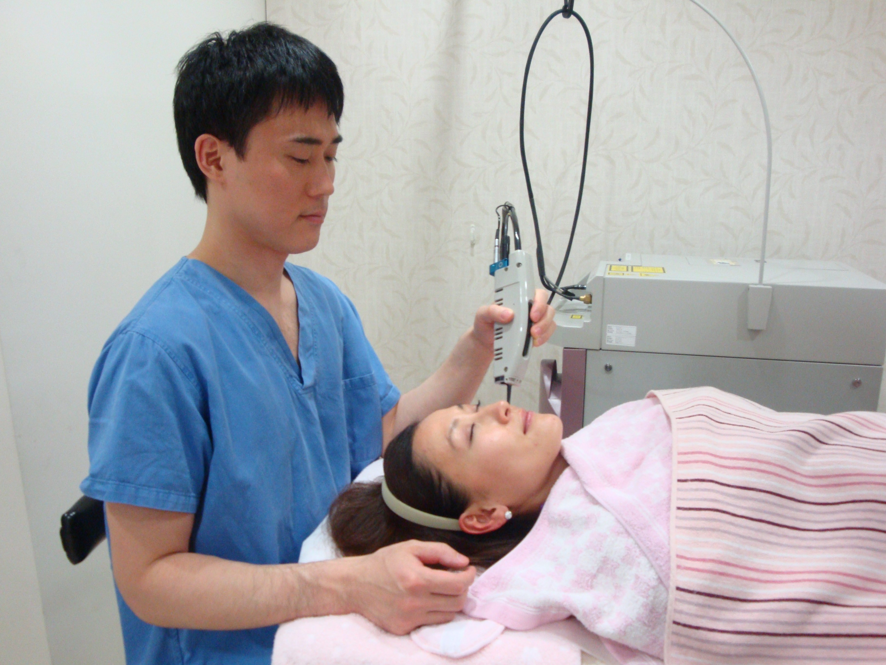 Vビーム赤味除去色素レーザー施術風景