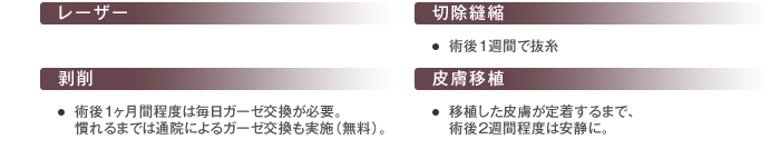 | 術後の通院 | 1~5回程度(範囲による) |