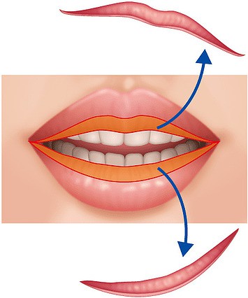上下の唇の厚みが気になる場合は、上下の唇を薄くします。