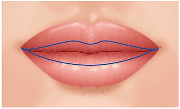 唇の厚みに関しては、上唇と下唇の厚みの比率が、3~4:5くらいが最も美しいとされています。