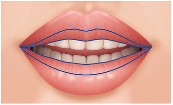 黄金比率では、上唇と下唇の厚みの比率が、3~4:5くらいが最も美しいとされている。
