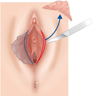 小陰唇肥大を修正する手術では、余分な小陰唇を切除し、大きさと形を美しく整えて縫い合わせます。手術は片側30分程度で終了。尚、この手術によって、膣に悪い影響が出ることはまずありません。