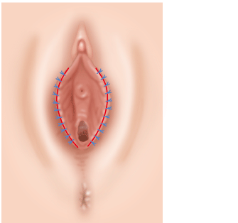 小陰唇縮小手術は、小陰唇の伸びて長くなっている部分を切除して短くし、美しい見た目の女性器にします。
