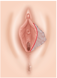 左右対称の小陰唇に対しては、元の形、大きさ、長さに応じて、片側のを手術する場合と両側を手術する場合があります。