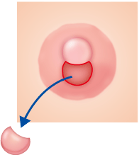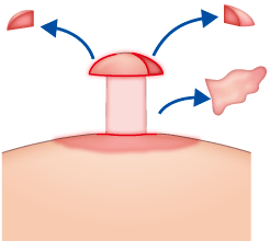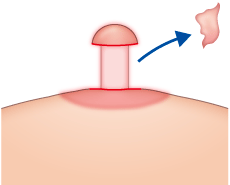 乳頭の上部を残して、それより下の部分の皮膚をメスやハサミを使って切除してキノコ状になるようにします。