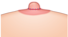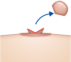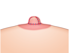 乳頭の余分な皮膚と皮下のボリュームを先端部分で楔状に切除し、縫合します。