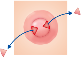 大きい乳頭を小さくするため、余分な組織を楔状に切除する。