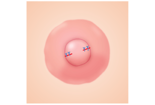 乳頭の皮膚の一部をメスで切開した後、細い糸で縫合します。
