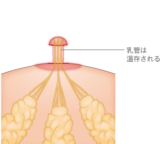 乳管と乳頭上部の乳管の出口が温存されるため、授乳機能も温存される。