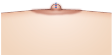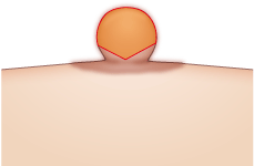 局所麻酔注射をした後、乳頭基部(乳首の付け根)から上で余分な皮膚を切除して縫合します。