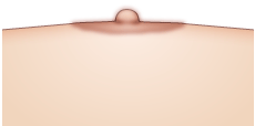 切除した部分を縫合すると、正面から見て、一回り小さい乳頭になる。