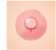 乳頭の上部の余分な皮膚と皮下組織をメスで切開し、