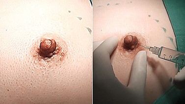 また、乳首の先端は敏感などころなので、最初から乳首の先端に麻酔の注射をせず、比較的感覚が鈍く痛みの少ない乳輪の辺りから注射して、乳首全体的に麻酔の注射をしていくようにします。