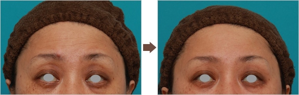 こちらは40代女性の患者様で、やはり眉毛を上げるクセがあり、額のシワを気にされていました。
