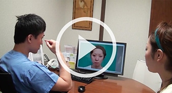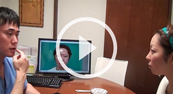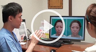 二重まぶた手術のカウンセリング風景の動画です。どのような二重にするか、実際に鏡を見ながら重瞼棒を用いてシミュレーションをします。また、埋没法、部分切開、全切開、眼瞼下垂の術後の腫れ、痛み、経過、ダウンタイムについてお話します。