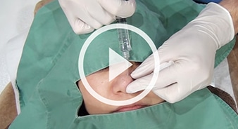 顔専用の腫れが少ない脂肪溶解注射メソシェイプフェイス高濃度脂肪溶解メソカクテルを団子鼻の鼻先、肉厚な小鼻に注射する施術風景動画です。団子鼻を手術で治す鼻尖縮小との違いについても解説しています。