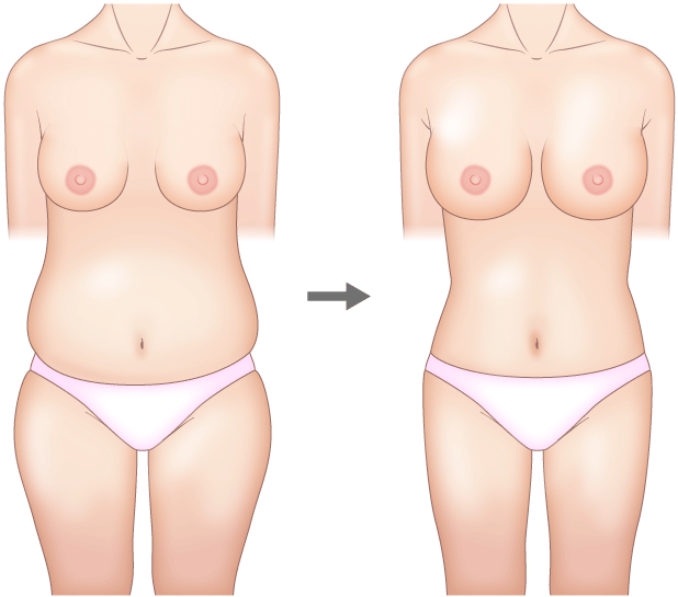 1. 細くしたい部分から脂肪を取りバストに注入し、メリハリボディへ。