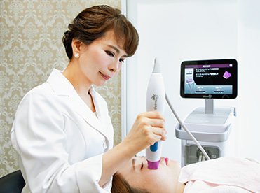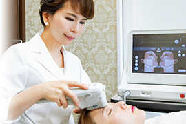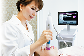 肌にジェルを塗り、複数の光&熱エネルギーを皮膚の全域に照射していきます。熱エネルギーによる刺激を与えることで、肌のコラーゲンの生成を促進。ほうれい線に加え、しみや毛穴、キメの乱れなど肌の質感も一緒にケアできる美肌治療です。痛みがほとんどなく、施術時間は20~30分。施術直後から1~2週間かけて徐々に弾力が向上し、ふっくらしたハリをもたらします。