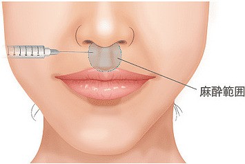 耳介軟骨を移植する上口唇の部分に局所麻酔注射をする。