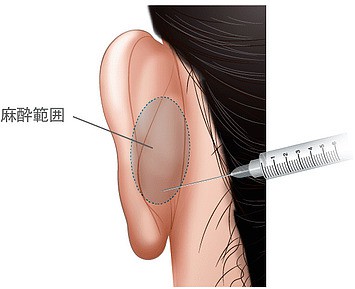 耳介軟骨を採る部分に局所麻酔注射をする。