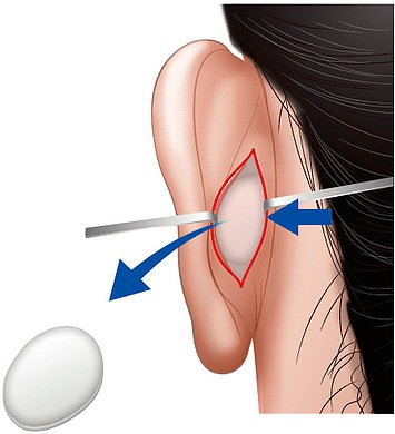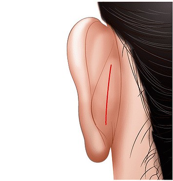 耳の裏側の皮膚を切開し、軟骨を採取します