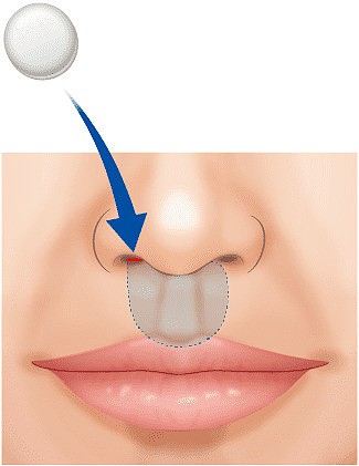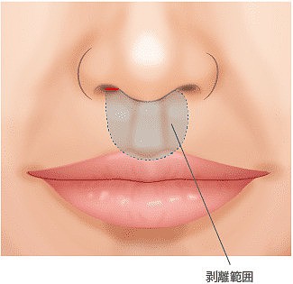 手術の場合、耳の後ろの軟骨(耳介軟骨)を切り取り、鼻と上唇の境目に挿入することで解決できます。手術は鼻の穴の内側から行うので、外から傷が見える心配はなし。耳介軟骨は1年ほどで再生するので、傷跡も気になりません。