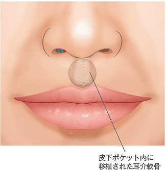 鼻柱基部から上口唇にかけて耳甲介軟骨が入る。