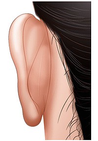 ガミースマイル修正手術を耳介軟骨移植で行う場合、比較的大きな軟骨が必要になるため、耳甲介(耳の真ん中の窪んでいる部分)から軟骨を採取することになります。