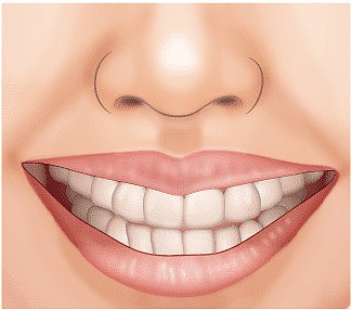 もしも、ガミースマイル修正手術をして、思いっきり唇を上げて笑っても全く歯茎が見えないようにするのであれば、巨大な耳介軟骨を移植しなければならないし、そもそも思いっきり笑っても全く歯茎が見えない顔は非常に不自然で表情の固まったおかしな状態になるので、そのようなことは通常しません。