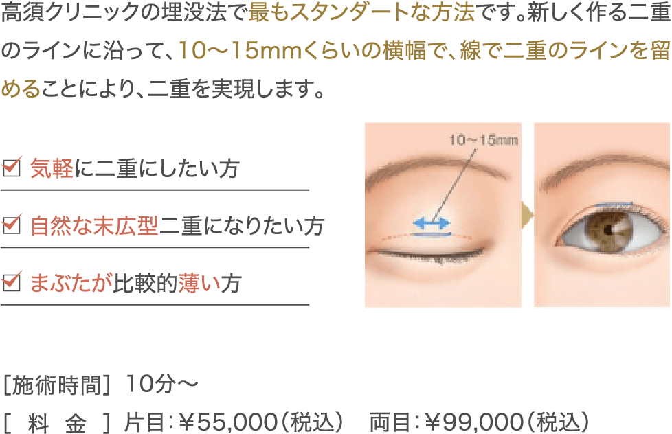 【二重まぶた・埋没法料金】片目 ¥55,000(税込)/両目 ¥99,000(税込)【全院】【二重まぶた・埋没法(二針固定)料金】片目 ¥99,000(税込)/両目 ¥187,000(税込)【全院】