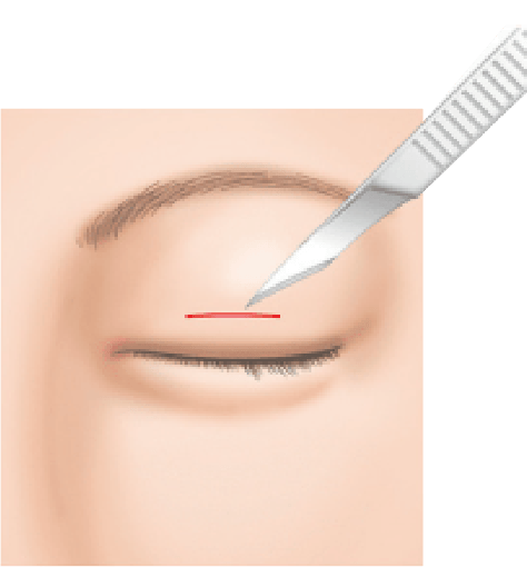 個人差はありますが、目の横幅に合わせて20~30mm程度の切開幅となります。