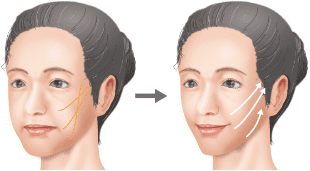 局所麻酔下に、頬からフェイスラインにかけて吸収糸を入れ、軽く引き上がるようにしました。