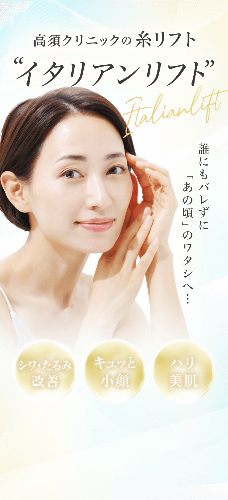 イタリアンリフトは頬のたるみをリフトアップするのに大変適した治療です。