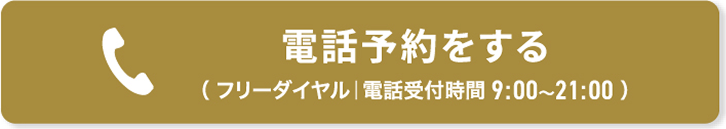 ※当日・翌日のご予約や細かなご相談が必要な場合はフリーダイヤル 0120-5587-100120-5587-35 までお電話ください。※電話受付時間9:00~21:00※毎月1日の電話予約受付は9:30~21:00です 。