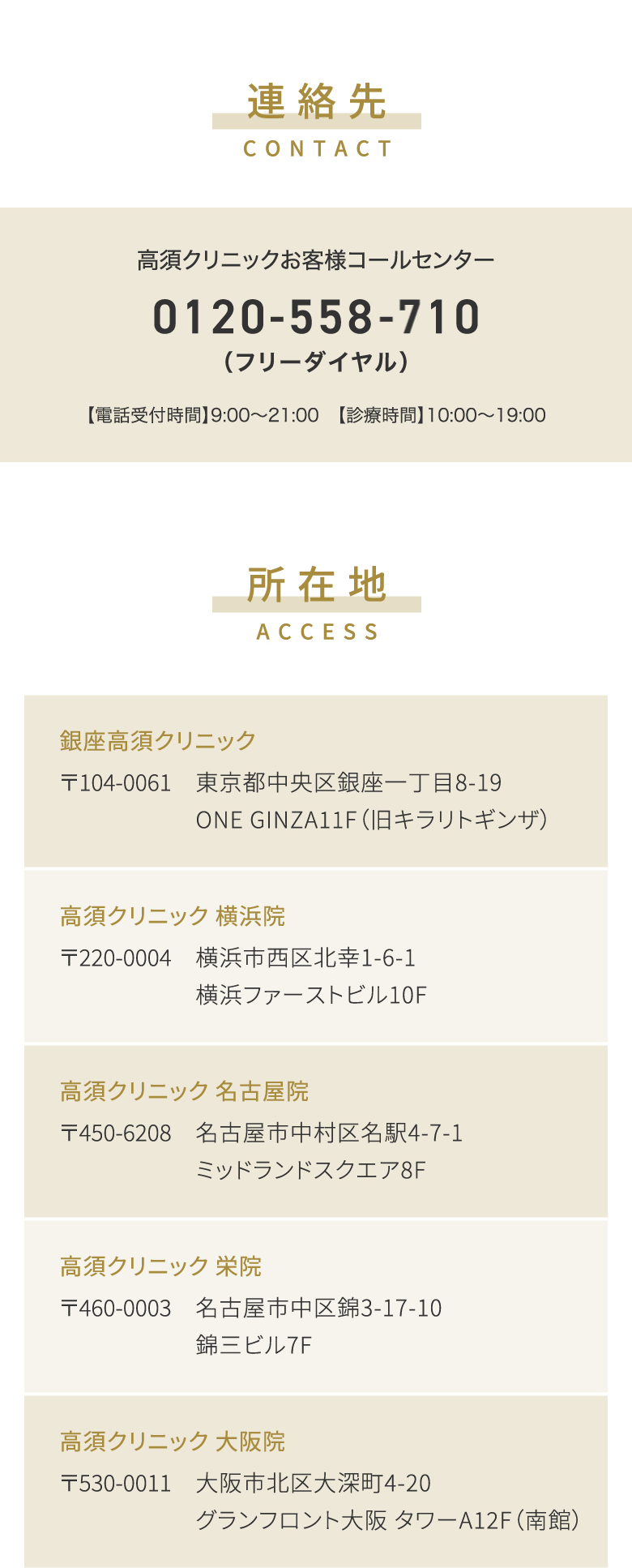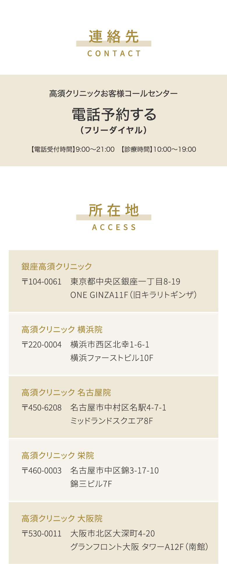 ※「東京院」は銀座1丁目へ移転し「銀座高須クリニック」としてリニューアルオープンしました。