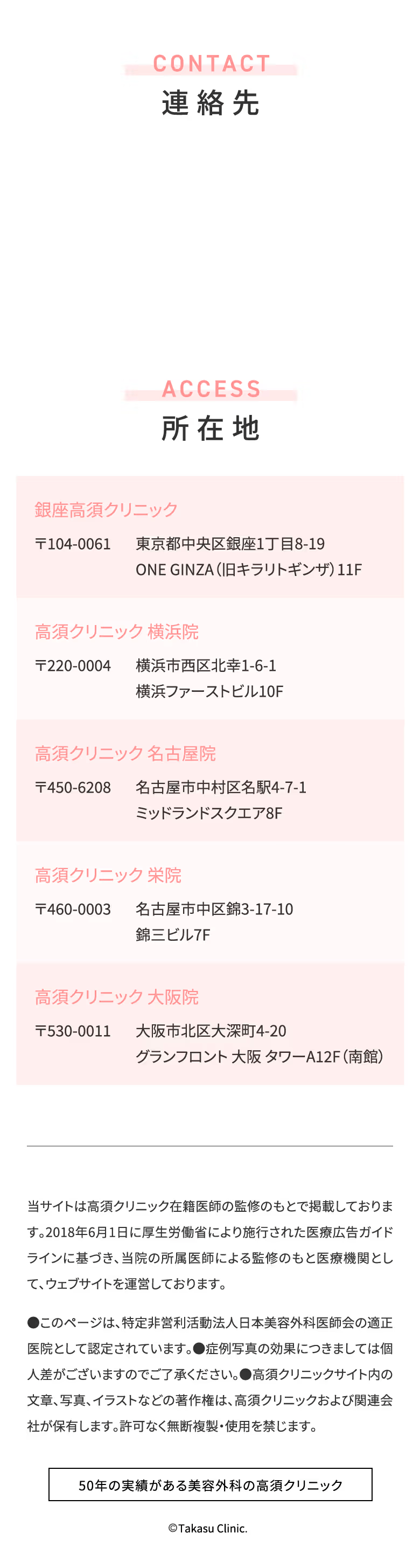 ※「東京院」は銀座1丁目へ移転し「銀座高須クリニック」としてリニューアルオープンしました。