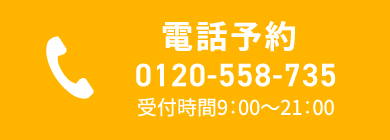 ※当日・翌日のご予約や細かなご相談が必要な場合はフリーダイヤル 0120-5587-100120-5587-35 までお電話ください。※電話受付時間9:00~21:00※毎月1日の電話予約受付は9:30~21:00です 。